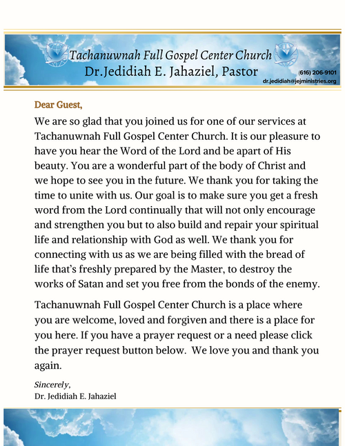 Tachanuwnah Full Gospel Center Church is a place where people can meet Jesus, engage in life-giving community, and everyone is welcome. We believe in creating a space where people can have authentic encounters with Christ, discover their gifts and use them for God's glory. Join us for our Sunday services!